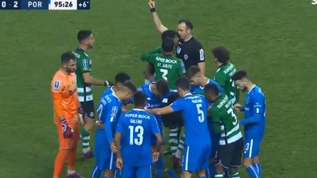 Os minutos finais do Sporting-FC Porto, em Leiria, foram escaldantes e o ambiente ficou a ‘ferver’ entre os jogadores das duas equipas.