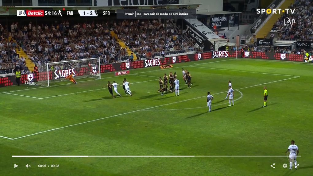 Depois de uma falta de Nuno Santos à entrada da área, o médio do Farense colocou a bola no lado de Adán, e, com ajuda do poste, assinou o 2-2 para os algarvios.