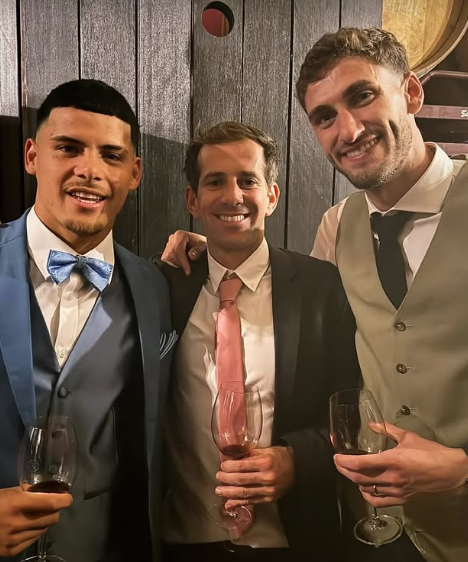 Maxi Araújo e Franco Israel costumam usar roupas mais casuais ou desportivas, mas não quiseram deslustrar num casamento a que foram em Montevideu no fim de semana e vestiram-se a preceito, tal como pode ser apreciado nas fotos partilhadas nas redes sociais pelo noivo, o defesa-central do Wolverhampton, Santiago Bueno, companheiro dos dois leões na seleção do Uruguai, orientada por Marcelo Bielsa.