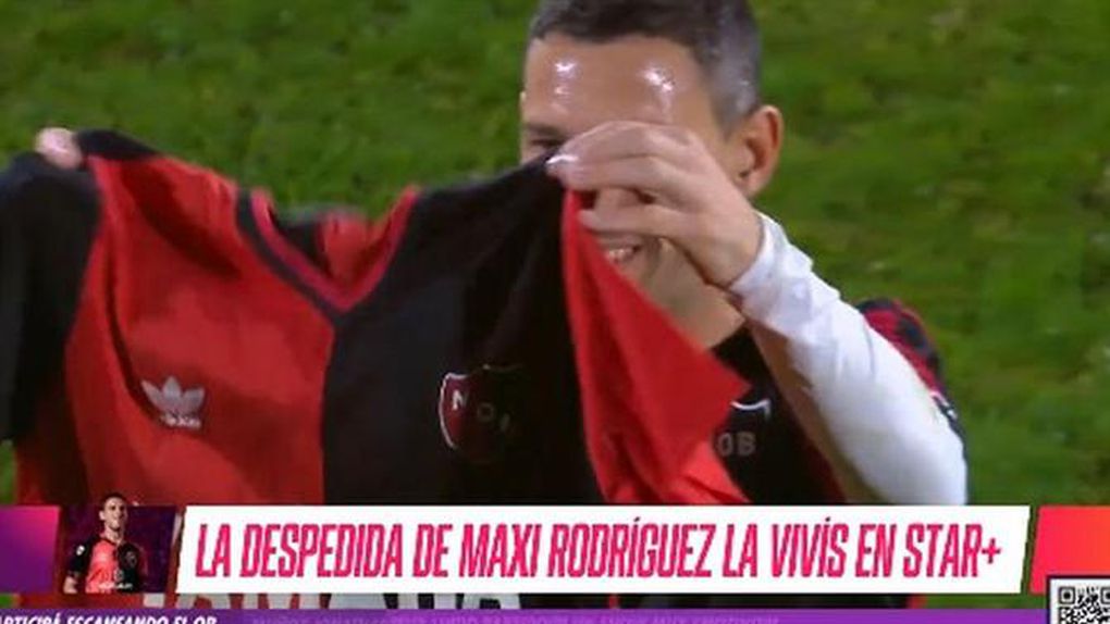 A grande festa de despedida de Maxi Rodríguez no estádio Marcelo Bielsa, casa do Newell's Old Boys, em Rosario, Argentina, ficou marcada por muitos momentos, entre eles o que este vídeo retrata: o médio de 42 anos recebeu das mãos do filho de Kun Aguero, Benjamín, uma autêntica preciosidade, uma camisola usada pelo avô deste, Armando Diego Maradona, a 10 que D10S usou ao serviço do Newell's.