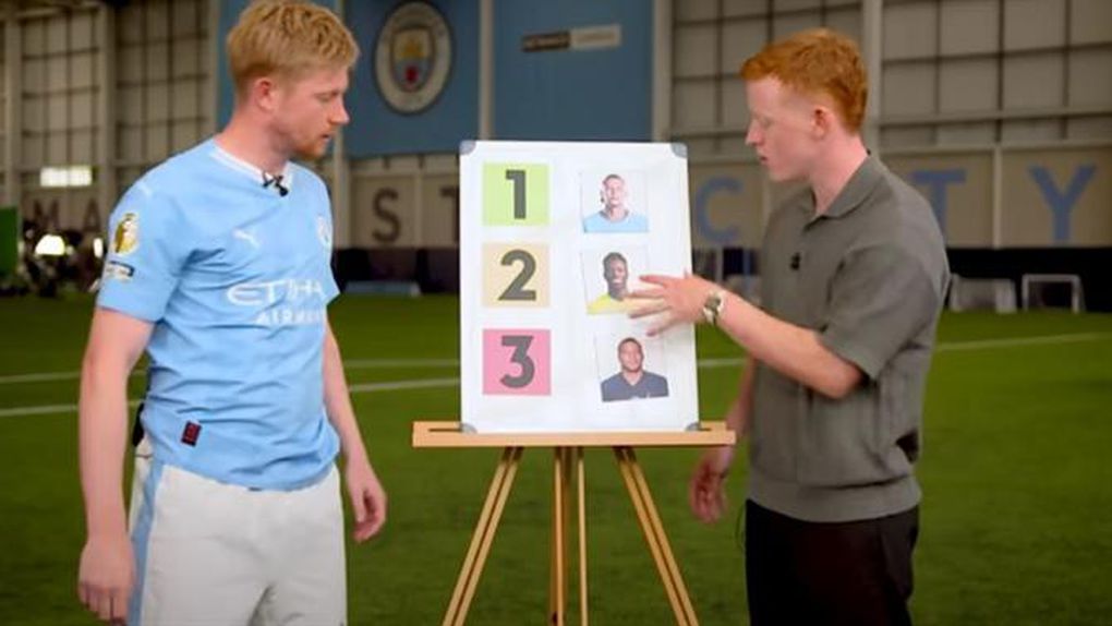 Numa votação num programa da Sky o belga do Manchester City é convidado a dizer quem vai ganhar a Bola de Ouro tendo três candidatos: Erling Haaland, Vinícius Junior e Kylian Mbappé.
