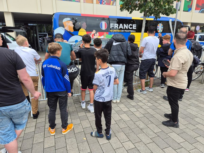 Os jogadores franceses foram recebidos ao som do hino, entoado por um pequeno grupo de jovens que viu essa iniciativa recompensada por Antoine Griezmann, o único jogador que se aproximou das grades para distribuir autógrafos e tirar algumas fotografias. Dos restantes, só um ou outro aceno, e por ali até andava o galo que chegou à Alemanha à boleia da polícia alemã para dar continuidade à vida de antigo empresário de jogadores convertido em mascote não oficial.