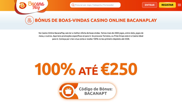 Os novos jogadores no BacanaPlay recebem um bónus de registo, que pode chegar até 250€. Este bónus é creditado automaticamente após o primeiro depósito.