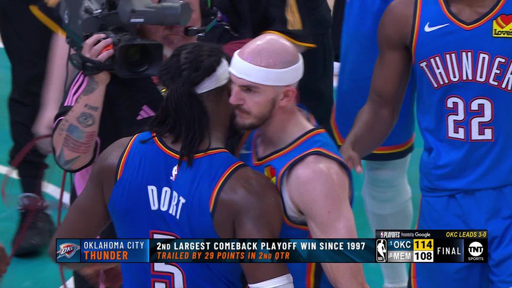 No segundo período, os Grizzlies chegaram a ter uma vantagem de 29 pontos. Era de 27 (67-40) quando Ja Morant (15 pontos e 5 assistências) saiu lesionado a três minutos do intervalo. O base de Memphis foi derrubado por Lu Dort, em desequilíbrio, quando se preparava para concluir contra-ataque. Ainda fez os lances livres, mas, com uma contusão na anca, já não voltou ao encontro. E os Thunder, a perderem por 26 pontos ao intervalo, recuperaram gradualmente e operaram a reviravolta na reta final.