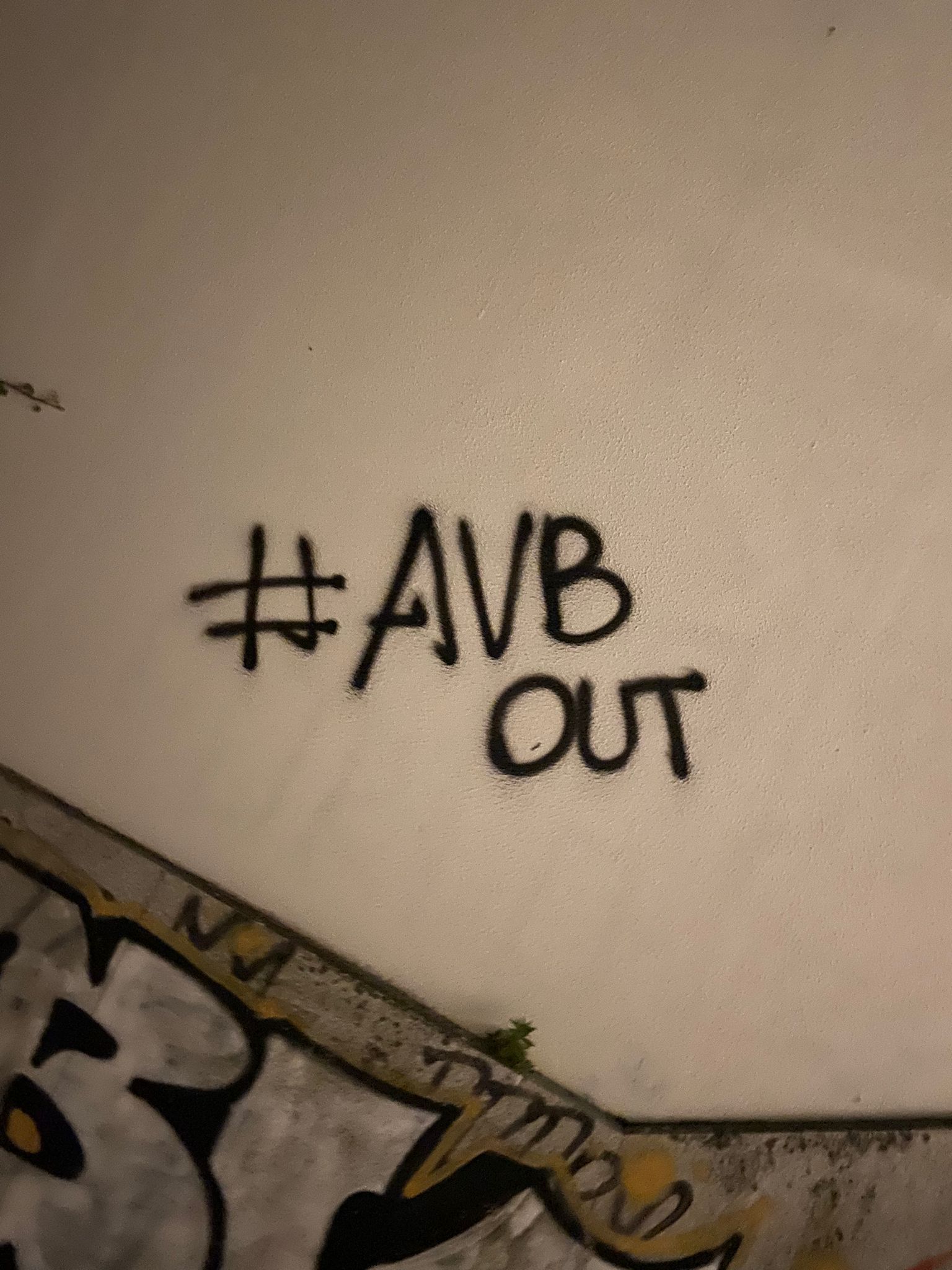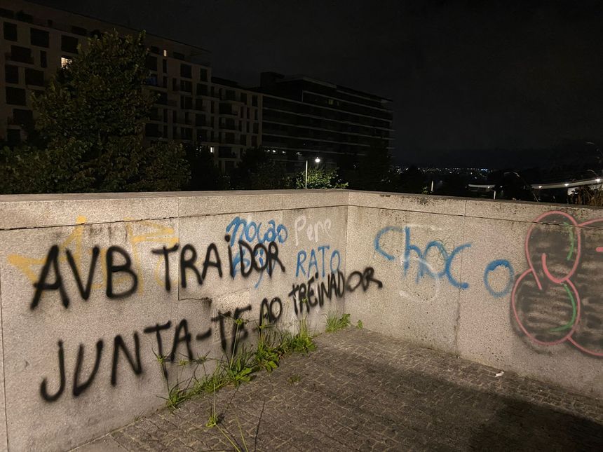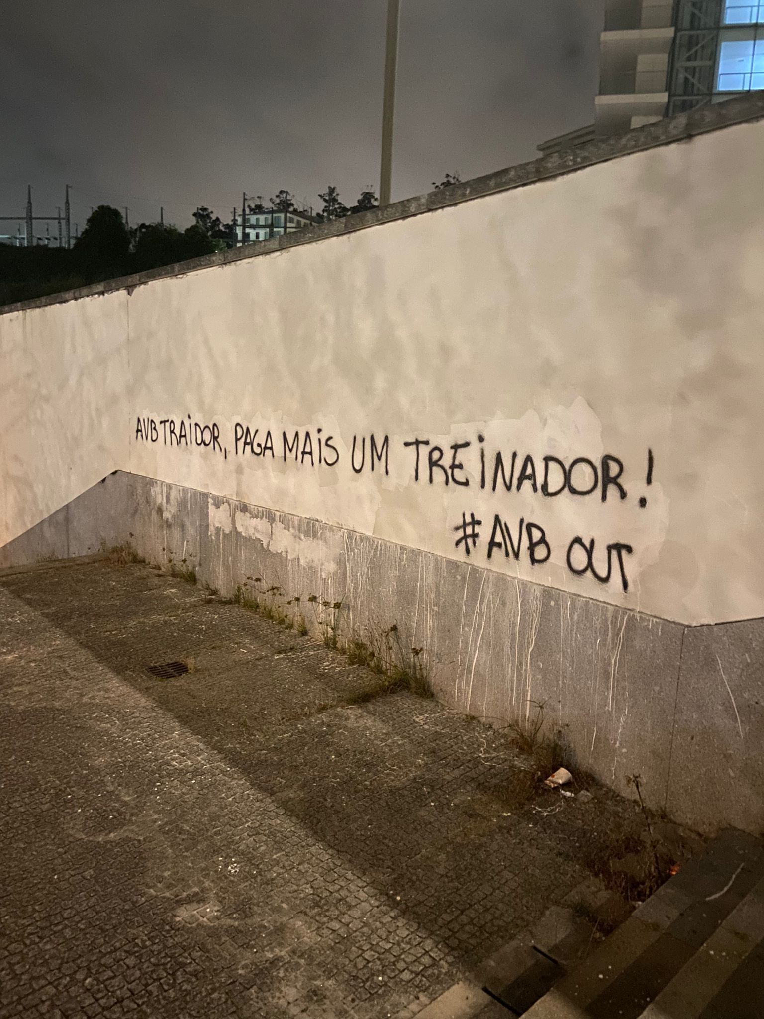 «AVB traidor, paga mais um treinador», «AVB traidor, junta-te ao treinador», «AVB c..., pede a demissão» e «AVB out [fora]» foram algumas das frases escritas.