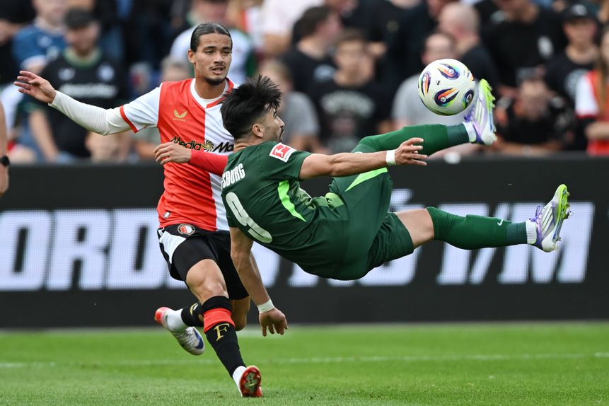 Foto curiosa, com dois alvos do Benfica: Moussa (Feyenoord) e Amoura (Wolfsburgo)