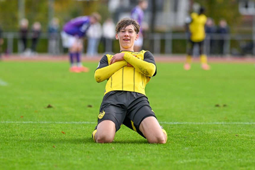 Diego Castel Branco celebra golo pela equipa sub-17 do Dortmund (IMAGO)