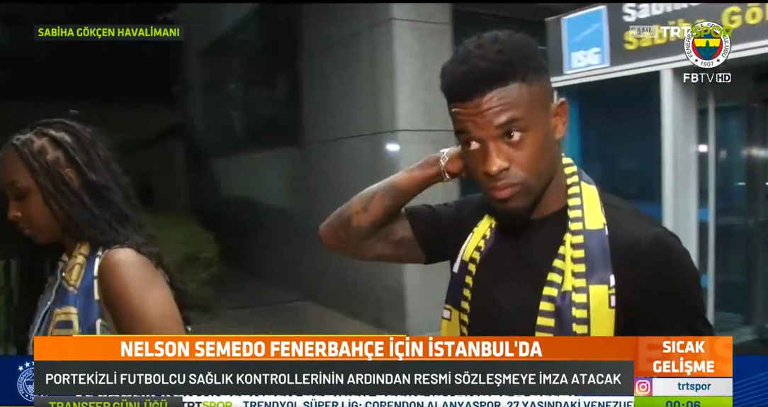 O internacional português Nélson Semedo já está desde ontem à noite em Istambul para fazer os habituais exames médicos e assinar contrato com o Fenerbahçe, clube treinado por José Mourinho.