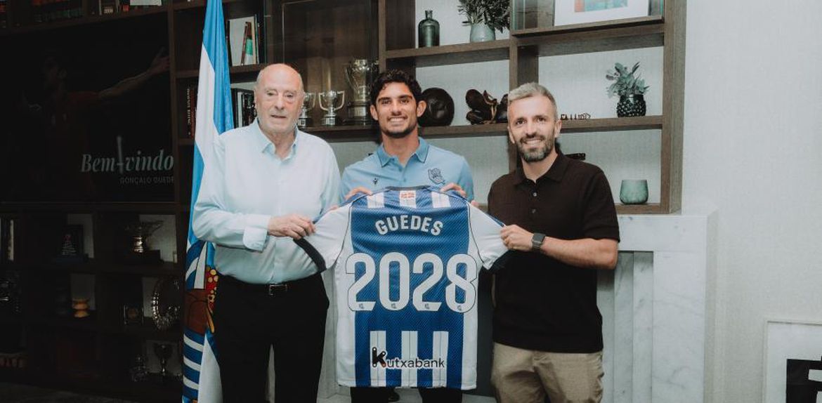 Depois de brilhar no Valência e de uma passagem fugaz pelo Villarreal, Gonçalo Guedes está de volta à LaLiga. O internacional português foi oficialmente apresentado como jogador da Real Sociedad, que desembolsou quatro milhões de euros, com dois milhões em bónus, pela contratação do jogador de 28 anos. Fica ligado ao emblema de San Sebastián até 2028.