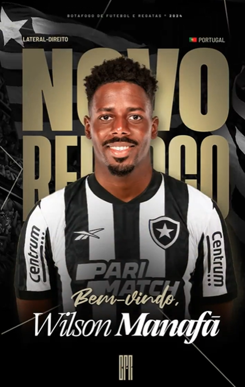 Lateral-direito de 29 anos é o novo reforço do Fogão para temporada 2024. Atleta é aguardado no Rio de Janeiro para a realização dos exames. Seja bem-vindo ao Mais Tradicional, Wilson Manafá! 🔥💪🏾 #VamosBOTAFOGO pic.twitter.com/CRxHzLJDbK