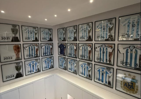 O avançado partilhou o museu onde exibe as camisolas que usou em todos os jogos disputados nas últimas três competições que conquistou ao serviço da Argentina: a Copa América (2021 e 2024) e o Mundial do Catar (2022).