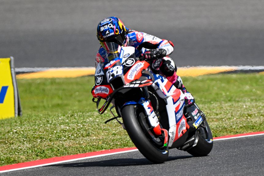 Miguel Oliveira chegou à Alemanha depois de um fim de semana frustrante nos Países Baixos e com o futuro por definir, mas Sachsenring voltou a ver o 'Falcão' a voar! De manhã, os sinais já eram auspiciosos com o português a acabar em 4.º (1.21,106), atrás de Jorge Martín (1.20,584), Marc Márquez (1.20,734) e Maverick Viñales (1.20,878), mas à tarde era preciso confirmar este posicionamento e a qualificação não é um dos pontos fortes do piloto da Trackhouse. Só que desta vez, o piloto de Almada voou para o topo da tabela e não mais saiu de lá.