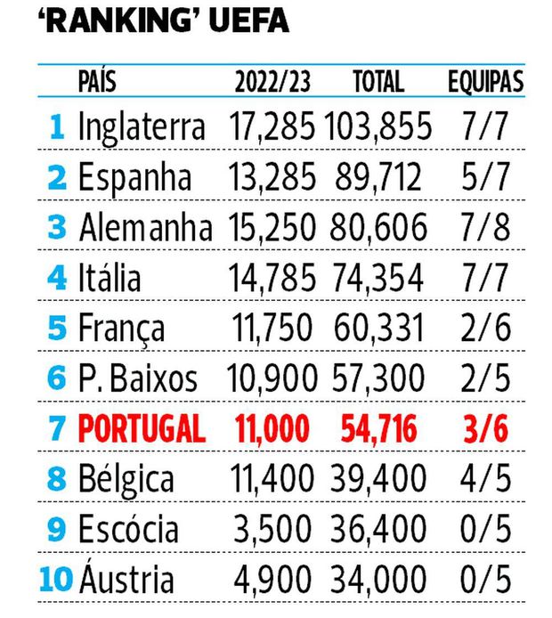 A eliminação de PSV e Ajax no play-off da Liga Europa deixa a representação neerlandesa na UEFA reduzida a Feyenoord (na mesma Liga Europa) e AZ Alkmaar (na Liga Conferência), mas mesmo em caso de eliminação rápida dos dois clubes seria preciso um milagre para que, com os resultados de Benfica, FC Porto e Sporting, Portugal ainda conseguisse anular os 2,584 pontos de desvantagem na luta pelo sexto lugar do ranking da UEFA.