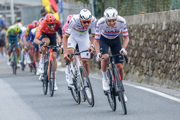 Se Pogacar se isolar, não precisará de companheiros, mas se passarem alguns dos referidos rivais (ou todos), o esloveno tem de contar que terá de trabalhar (muito) mais do que estes. Por isso, o plano poderá passar pelo adiamento do ataque de Pogi para o Poggio, preservando assim pelo menos um elemento consigo na transição.