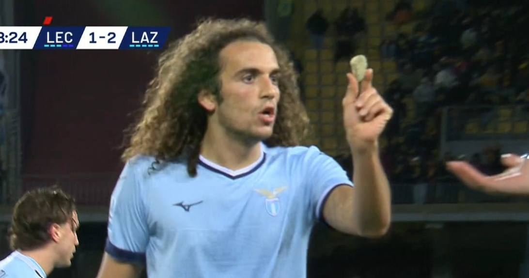 A pedra caiu perto de Mattéo Guendouzi, que imediatamente pegou nela e entregou-a ao quarto árbitro, reportando também a situação.