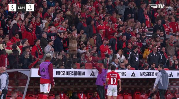 Os adeptos não esconderam a insatisfação pela opção do alemão em retirar João Neves do jogo e o próprio treinador se mostrou surpreendido com a reação, ficando a olhar para trás do banco estupefacto, enquanto choviam insultos e até alguns objetos para a área técnica.