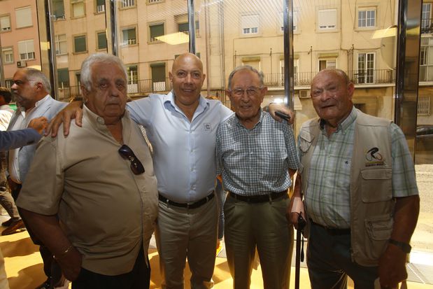 Foto de 2023: Francisco Araújo, primeiro a contar da direita, ladeado pelo jornalista Guita Júnior, por Joaquim Gomes (diretor da Volta a Portugal), e por Fernando Emilio, jornalista de A Bola, também já falecido (foto: Rui Raimundo/A BOLA)