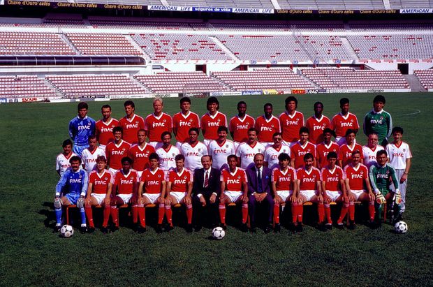 Em cima da esq. para a dir.: Bizarro, Miranda, Garrido, Mats Magnusson, Ricardo Gomes, Mozer, Ricky, Abel, Admir, Vata, Lima e Dias Graca. Ao meio: Jose Luis (roupeiro), Palhinhas (massagista), Hernani, Elzo, Jesualdo Ferreira (adjunto), Eusebio (adjunto), Toni (treinador), Manuel Jorge (recuperador fisico), Amilcar Miranda (medico), Pacheco, Valdo, Abel Silva, Asteronimo Araujo (massagista) e Identificar. Em baixo: Manuel Bento, Fonseca, Samuel, Vitor Paneira, Veloso, Joao Santos (presidente), Sheu, Gaspar Ramos (diretor do futebol), Diamantino, Chalana, Mariano, Alvaro Magalhaes e Silvino.