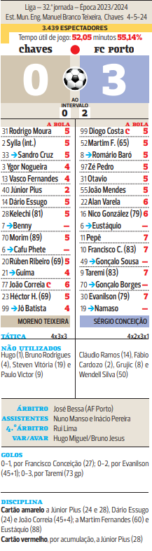 O último golo foi de Taremi, em Chaves, a 4 de maio de 2024.