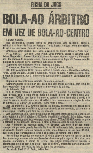 O presidente do FC Porto chegou atrasado ao Aberdeen-FC Porto da meia-final da Taça da Taças, a 25 de abril de 1984, porque o seu filho Alexandre sofrera terceiro pneumotórax seguido. Pinto da Costa, mesmo triste e cansado, conseguiu ironizar: «Estava a contar com o 0-0 para passarmos à final mas o Vermelhinho fez-me aquela desfeita de marcar o golo...»