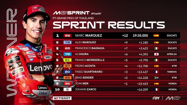 🥇 @marcmarquez93, your #TissotSprint winner in Buriram! #ThaiGP 🇹🇭 pic.twitter.com/cd1KZvFb1h