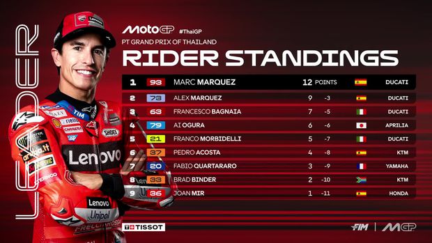 Back in the lead of the Championship standings 📈@marcmarquez93 #ThaiGP 🇹🇭 pic.twitter.com/xDmhZutfOJ