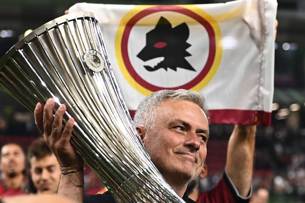 José Mourinho com a taça de vencedor da Liga Conferência (IMAGO / Gribaudi/ImagePhoto)