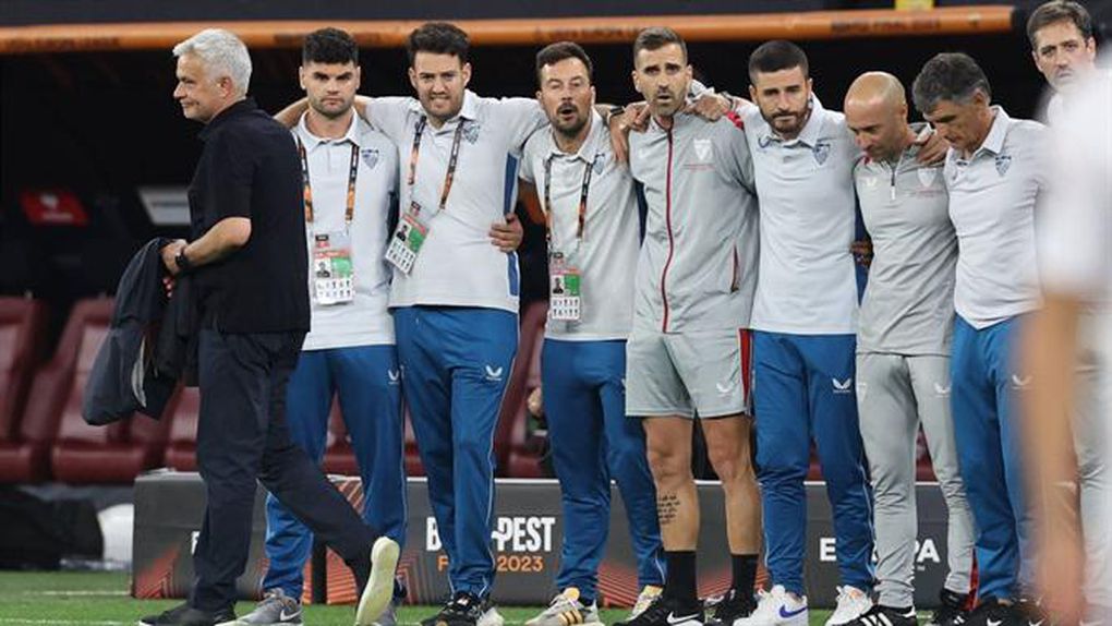 José Mourinho, treinador da Roma, cumprimentou e deu os parabéns a José Luis Mendilibar, técnico do Sevilha, antes de Montiel bater o penálti que viria a ser decisivo, ‘dando’ a Liga Europa à formação espanhola.