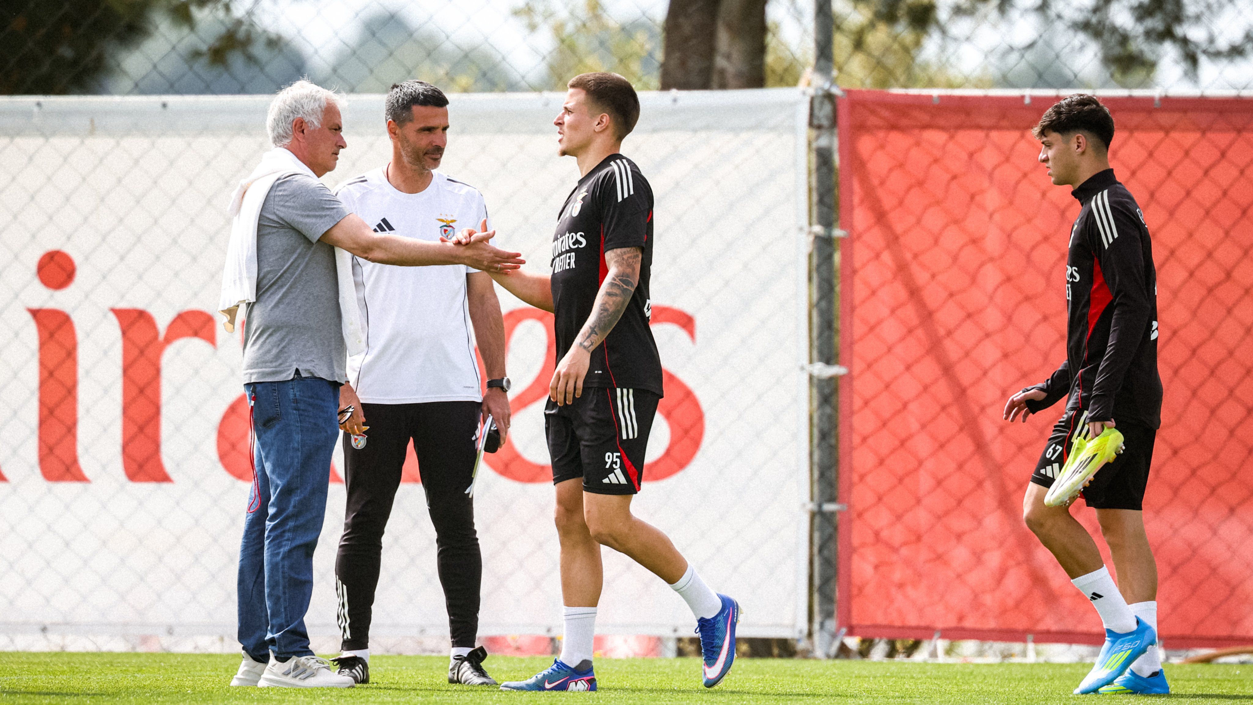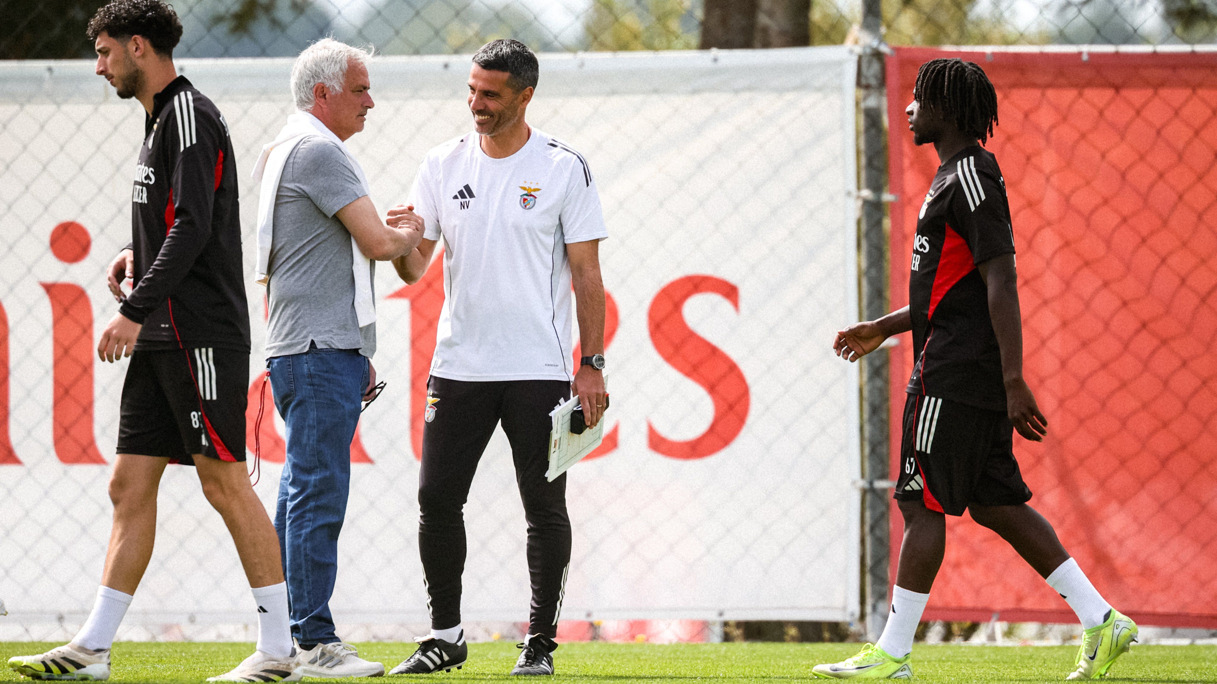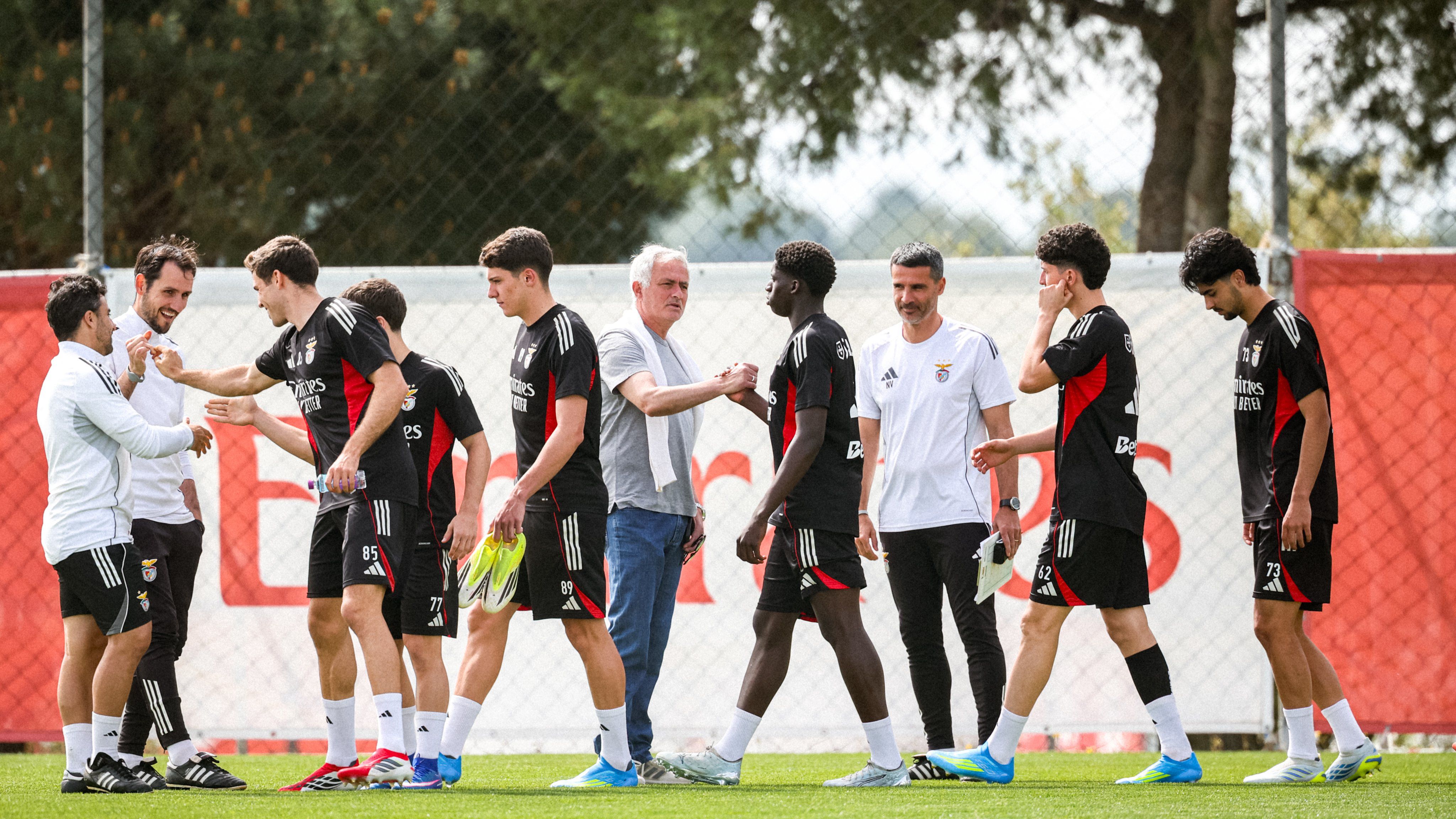 José Mourinho marcou presença no treino do Benfica B, no dia seguinte ao triunfo da equipa principal na casa do Sporting (2-1). O técnico de 63 anos deslocou-se ao Benfica Campus em dia de folga, cumprimentou os atletas da equipa secundária e esteve à conversa com Nélson Veríssimo... que tinha sido o último treinador das águias a vencer em Alvalade, em abril de 2022.