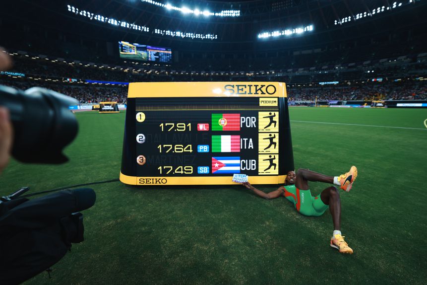 Pedro Pichardo, campeão olímpico neste mesmo estádio, em Tóquio2020, conquistou pela segunda vez o título mundial, depois de Eugene2022, numa carreira em que trazia já duas pratas em Campeonatos do Mundo por Cuba, além de um segundo lugar nos Mundiais de pista curta de 2022.
