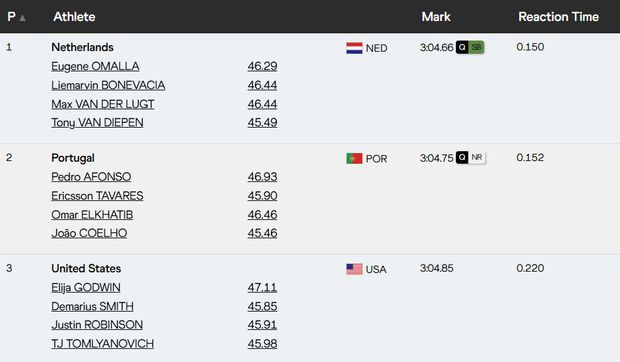 Estafeta portuguesa qualificou-se em segundo com passagem direta