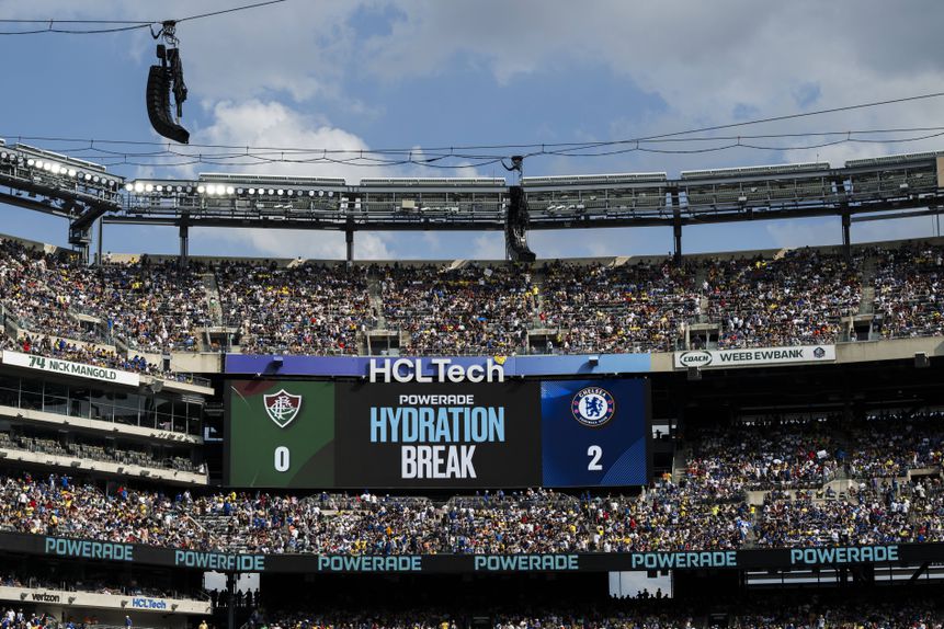 O Mundial de Clubes do ano passado já teve pausas para hidratação, como no Fluminense-Chelsea - Foto: IMAGO