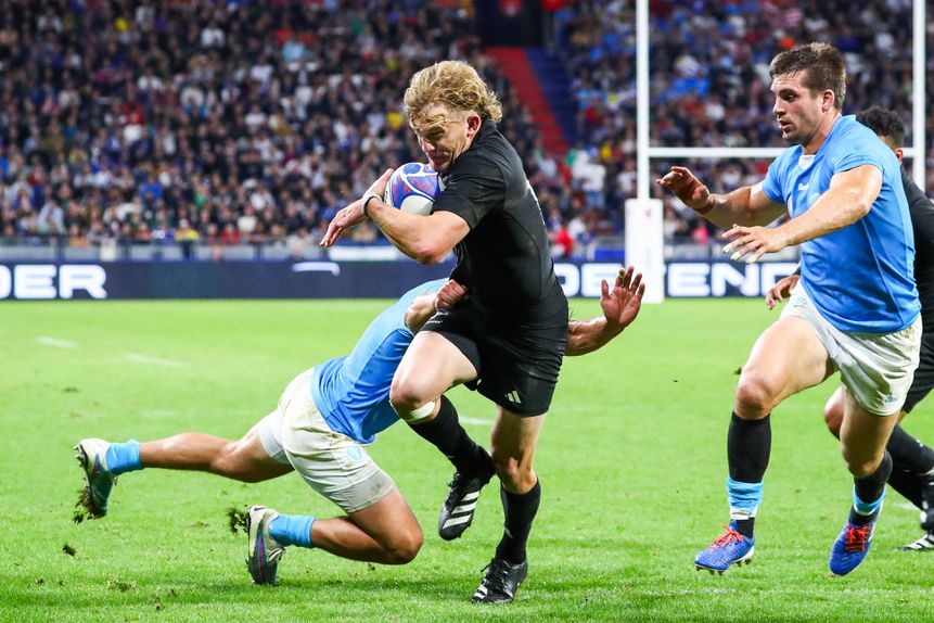 A Nova Zelândia assegurou a passagem aos quartos de final do campeonato do mundo de râguebi ao bater o Uruguai por 76-0 (26-0 ao intervalo). Os All Blacks subiram ao primeiro lugar do Grupo A (15 pontos) e aguardam pela conclusão do França-Itália, esta sexta-feira, em igualmente em Lyon, para saber se terminam a fase de grupos no topo ou na segunda posição. Os Teros terminam no 4.º posto e falham a qualificação direta para o mundial da Austrália, em 2027.