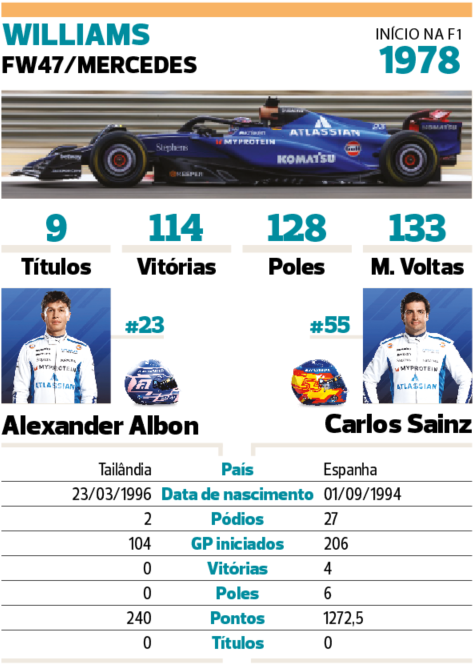 Por último, ainda entre (inúmeros) motivos de interesse na nova temporada, aferir o desempenho das demais seis equipas da grelha, de que o da Williams, capaz de proporcionar à histórica equipa britânica o ressurgimento após os tempos áureos das décadas de 1980 e 90 (últimos títulos datam de 1997, construtores e de pilotos, pelo canadiano Jacques Villeneuve). A contratação do motivado Carlos Sainz, empenhado em continuar a mostrar serviço depois de ter sido relegado da Ferrari), é um incentivo.