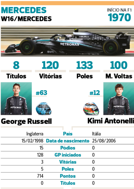 Na primeira época pós-Hamilton na equipa do construtor alemão, George Russell é a principal aposta, mas a maior expectativa está na estreia do promissor italiano Andrea Kimi Antonelli, com apenas 18 anos, a quem se identifica talento extraordinário. Sem dúvida, será um dos jovens lobos a observar em 2025, como outros, entre os quais se destaca o neozelandês (23 anos) Liam Lawson, eleito pela Red Bull para substituir Sergio Pérez.