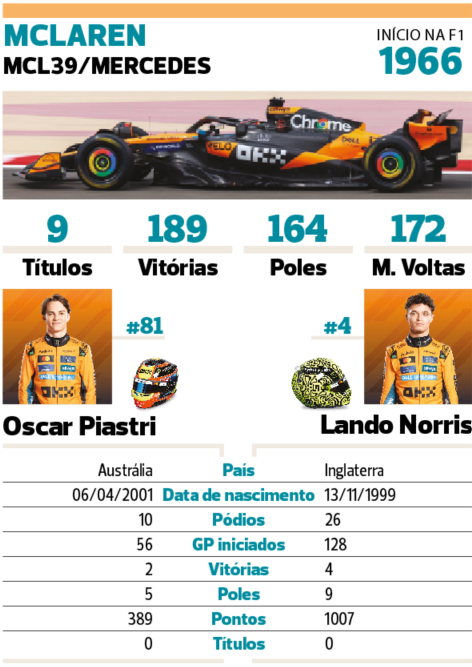 Na McLaren não há hierarquia (foi estabelecida em fase tardia da época transata, em favor de Norris, para não dispersar esforços na tentativa de chegar ao título, em vão) e apesar de o britânico se ter mais regular, ainda que não o suficiente para ter vencido Verstappen), Piastri deverá ter concluído a fase de maturação e acaba de receber voto de confiança da equipa com a renovação contratual.