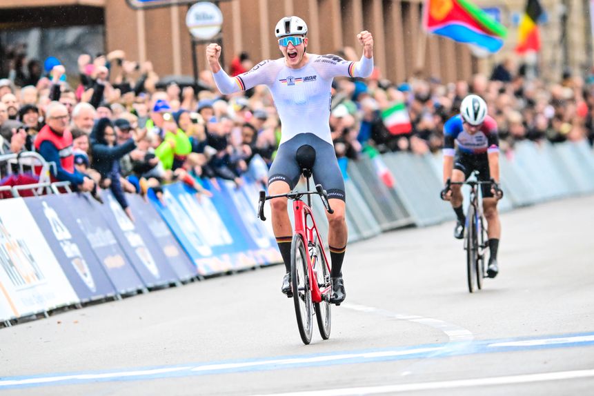 Não menos espantoso, o eslovaco Martin Svrcek levou a prata, batido ao sprint pelo gigante germânico, de 1.95 metros, que corre pela equipa norte-amricana Lidl-Trek, e o bronze foi para o belga Alec Segaert.