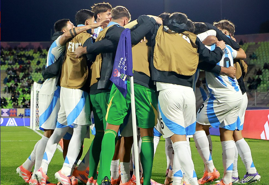A missão argentina complicou-se quando o defesa central Santiago Fernandez foi expulso aos 10', mas a alviceleste reagrupou-se, segurou a vantagem e ampliou-a pelo suspeito do costume. Alejo Saco, avançado do Bayer Leverkusen, voltou a fazer o gosto ao pé a quatro minutos do intervalo e bisou na partida.