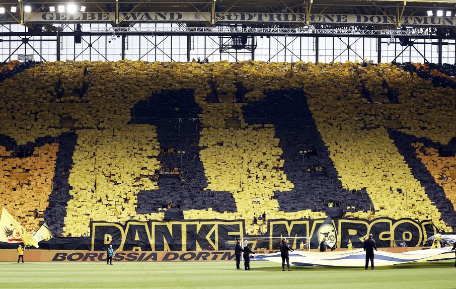 Marco Reus fez sábado o último jogo pelo Borussia Dortmund e na despedida pagou cerveja aos adeptos da tribunal sul do Signal Iduna Park, conhecida como Muralha Amarela.