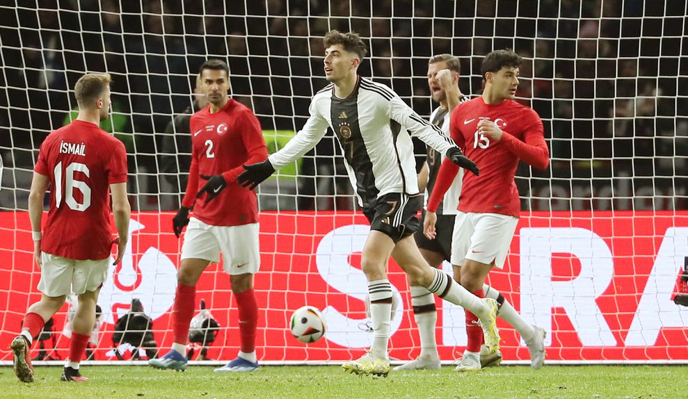 A Alemanha recebe a Turquia em mais um jogo de preparação para o Euro 2024. Ambas as seleções já têm a presença garantida na fase final da competição e Julian Nagelsmann, que chegou recentemente ao comando da equipa, aproveitou para testar Kai Havertz numa nova posição.