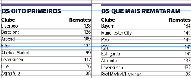Seguem-se o Manchester City e o PSG, cada um com 149 remates, com 18 golos os britânicos e 14 os gauleses. Resultado? Estiveram ambos até à última jornada em risco de ficarem de fora.