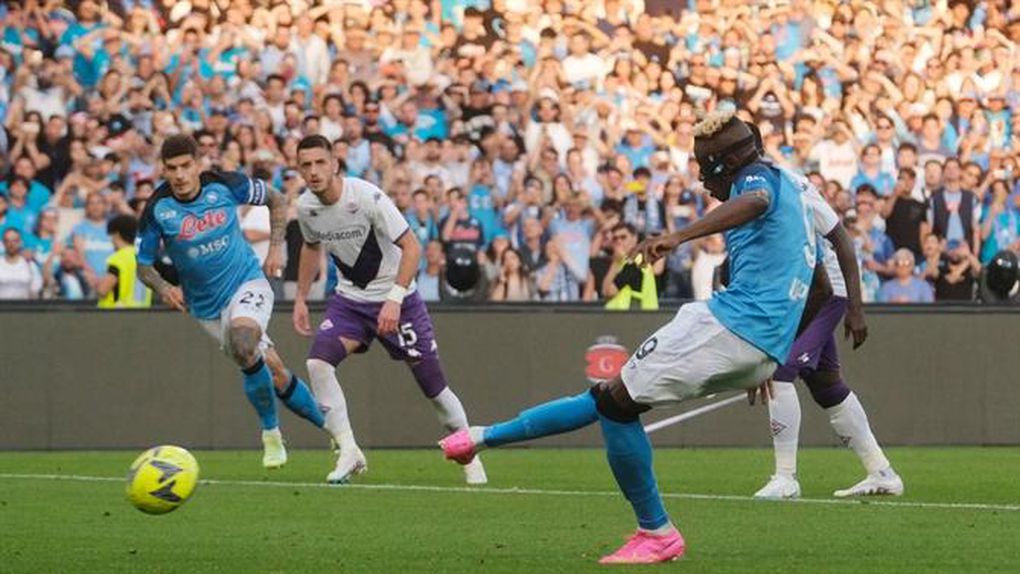 O único golo da formação orientada por Luciano Spalletti (1-0) coube ao inevitável avançado nigeriano Victor Osihmen, melhor marcador da Serie A, aos 72’, a aumentar o seu pecúlio no campeonato para 22 golos… depois de ter desperdiçado, aos 48’, a tentativa de conversão de uma primeira grande penalidade no duelo dos ‘partenopei’ ante a formação ‘viola’, treinada por Vincenzo Italiano, aos 48’.