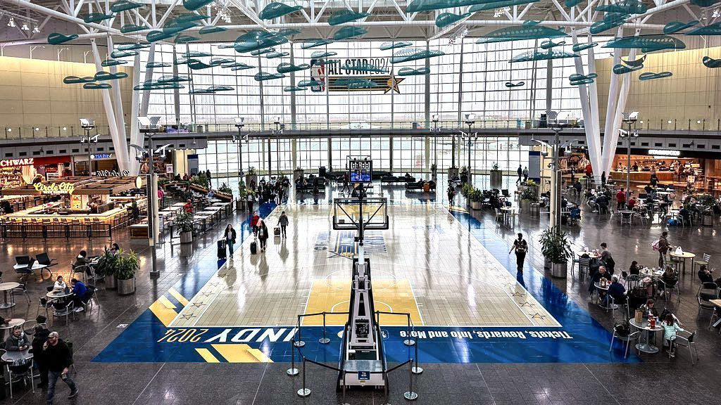 De forma a dar conhecimento de um dos fins de semana mais esperados do ano, foi instalado um campo de basquetebol em pleno aeroporto da capital do Estado de Indiana, a 'casa' dos Indiana Pacers. Desta forma, também para alertar para o facto de esta ser a casa dos Pacers, no centro do campo aparece uma pintura alusiva ao logótipo do clube, juntamente com a data do evento e o símbolo da NBA.