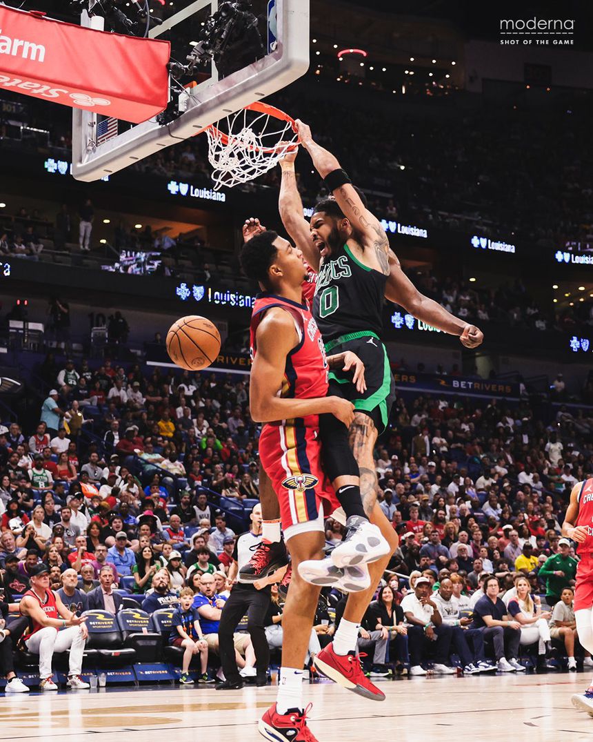 Os New Orleans Pelicans ainda começaram na liderança mas, na segunda metade da partida, os Celtics deram a volta e conseguiram uma vitória relativamente tranquila. Do lado dos Pelicans, Zion Williamson (25 pontos, 9 ressaltos) e CJ McCollum (24 pontos) foram os protagonistas, mas a equipa de Boston, cujo cinco inicial fez todo pelo menos 13 pontos, conseguiu ser o conjunto mais completo. Jayson Tatum, com 23 pontos, foi o melhor marcador dos Celtics, em mais uma partida disputada sem Neemias Queta, que jogou pelos Maine Celtics da G-League.
