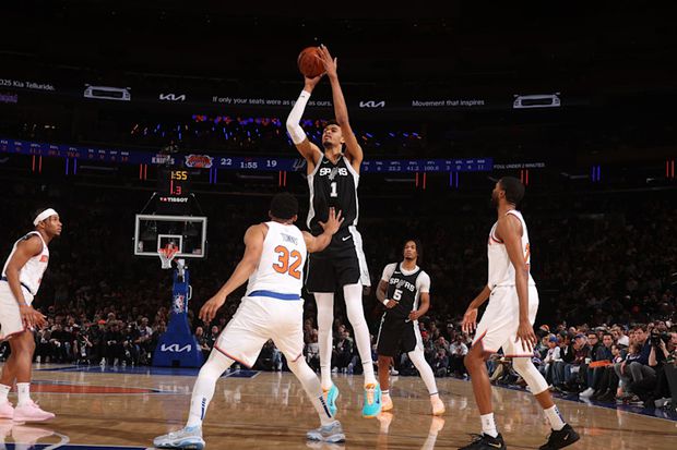 Que prenda! Com o embate entre Knicks e Spurs a abrir a sequência das cinco partidas da tradição de se jogar a 25 de dezembro, algo que acontece desde a segunda época da NBA (1947/48), então ainda designada Basketball Association of America, Mikal Bridges (41 pts, 4 ass) e Victor Wembanyama (42 pts, 8 res, 4 ass, 4dsl) deram espetáculo no Madison Square Garden, onde o primeiro levou os nova-iorquinos à vitória por 117-114.