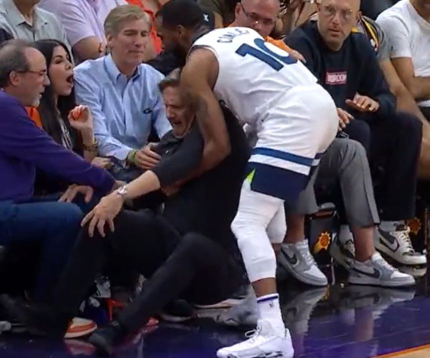 O treinador do Minnesota Timberwolves, Chris Finch, teve de ser retirado no final do jogo 4 contra o Phoenix Suns, no domingo à noite, depois de ter chocado de frente com um jogador da própria equipa, Mike Conley, a menos de dois minutos do fim.