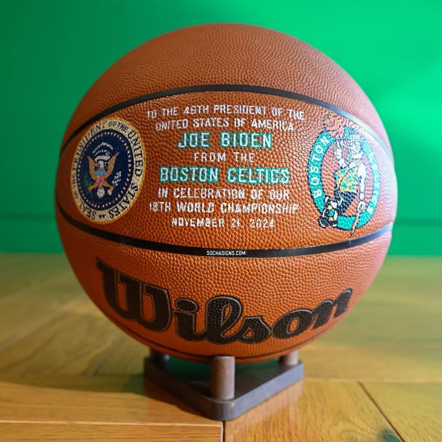 Como também é hábito, o presidente dos Estados Unidos recebeu uma camisola de jogo com o nome nas costas e o n.º 46, por tratar-se do 46.º presidente americano, assim como uma bola comemorativa, que o anfitrião praticamente nunca mais largou ao longo da cerimónia que foi antecedida por uma visita ai interior da Casa Branca, incluindo a Sala Oval.