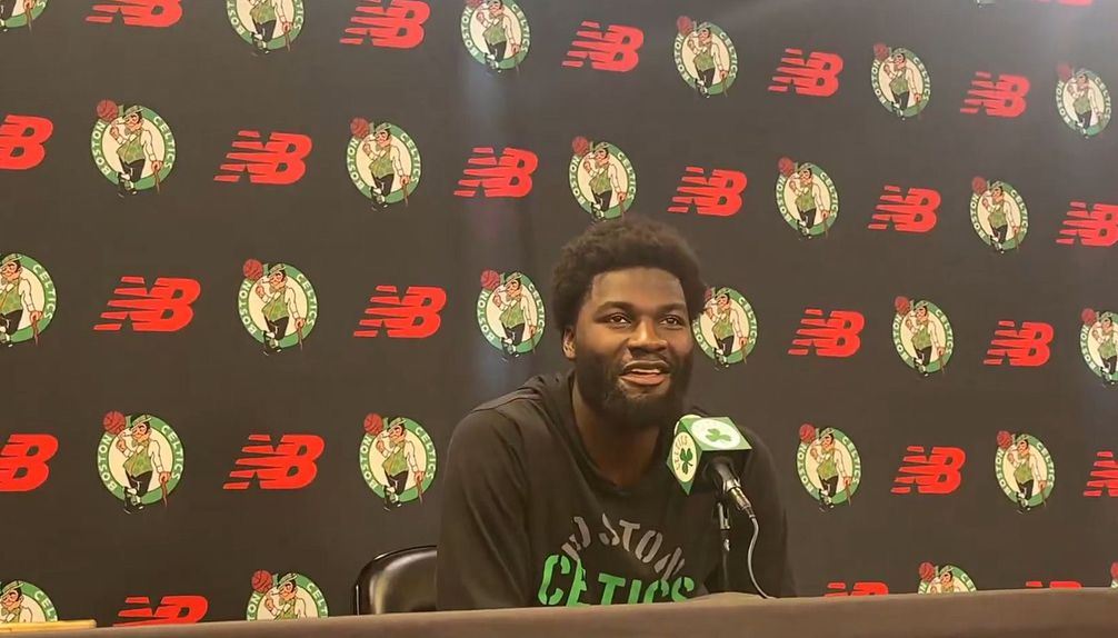 Neemias Queta gets a question from Jordan Walsh to close his presser about how he’s preparing for the playoffs: