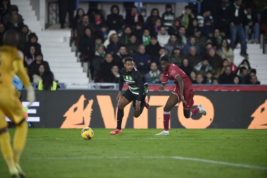 João Pereira não esperou mais. Deixou Quaresma nos vestiários, entrou Matheus Reis. O brasileiro acrescentou capacidade de transporte e o belga naturalmente sentiu-se mais confortável para o passe vertical. Gyokeres também vinha com ordens de desenhar diagonais sempre para a direita, fugindo aos centrais. Gbane ainda foi surpreendido no início, porém depois ajustou.