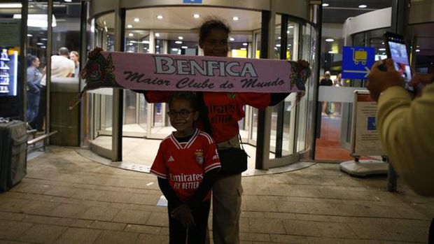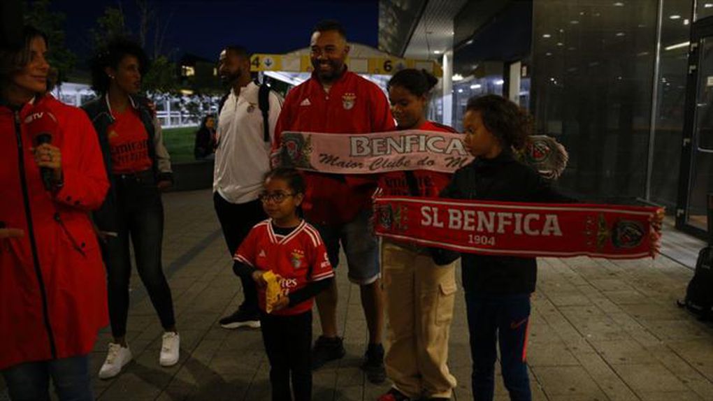 O voo do Benfica partiu de Lisboa duas horas depois do previsto mas nem a demora nem a noite fria demoveu um pequeno grupo de benfiquistas que tinha a esperança de ver os jogadores ao vivo.
